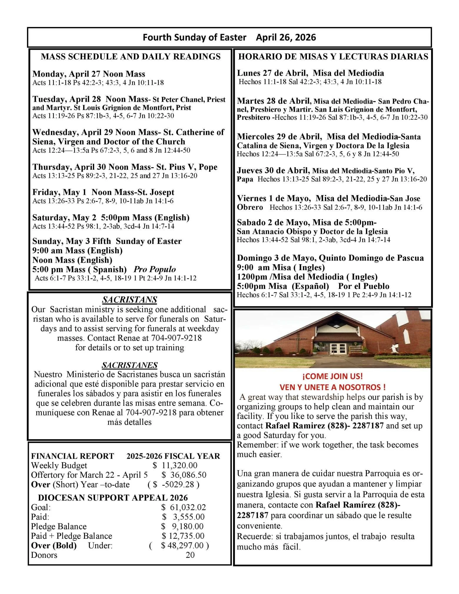 Weekly BulletinsWeek of April 26th, 2026 Bulletin Week of 4/26/26 Bulletin Week of 4/26/26 Kids Bulletin 4/26/26 Kids Bulletin 4/26/26 Previous Bulletins Bulletin Week of 4/19/26 Bulletin Week of 4/19/26 Kids Bulletin Week of 4/19/26 Kids Bulletin Week of 4/19/26 Bulletin Week of 3/29/26 Bulletin Week of 3/29/26 Kids Bulletin Week of 3/29/26 Kids Bulletin Week of 3/29/26 Bulletin Week of 3/22/2026 Bulletin Week of 3/22/2026 Kids Bulletin Week of 3/22/26 Kids Bulletin Week of 3/22/26